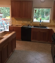 Remove all cabinets, appliances and flooring, install new cabinets appliance and flooring, tile backsplash install new lighting and countertop